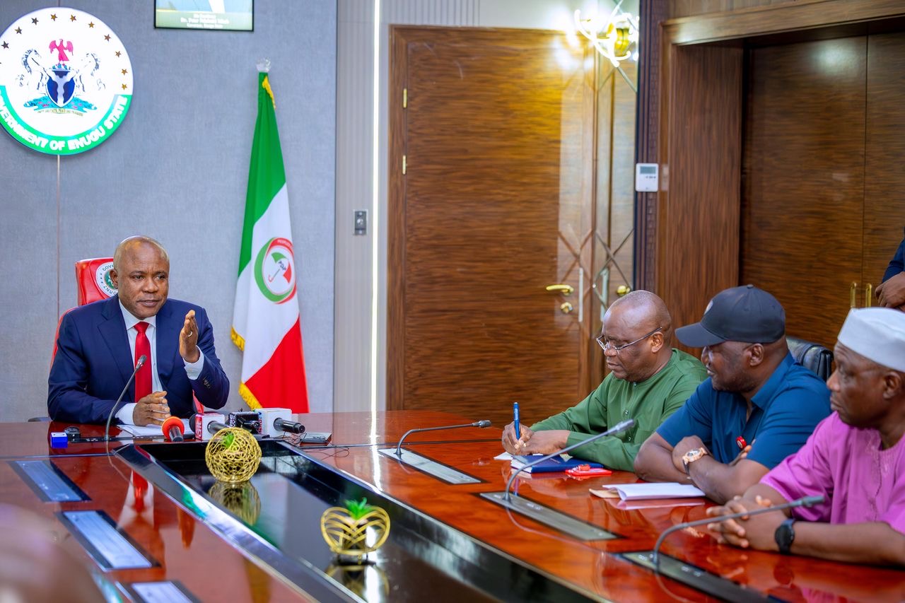 Gov Peter Mbah with officials of NRC during the visit to Enugu Government House on Wednesday