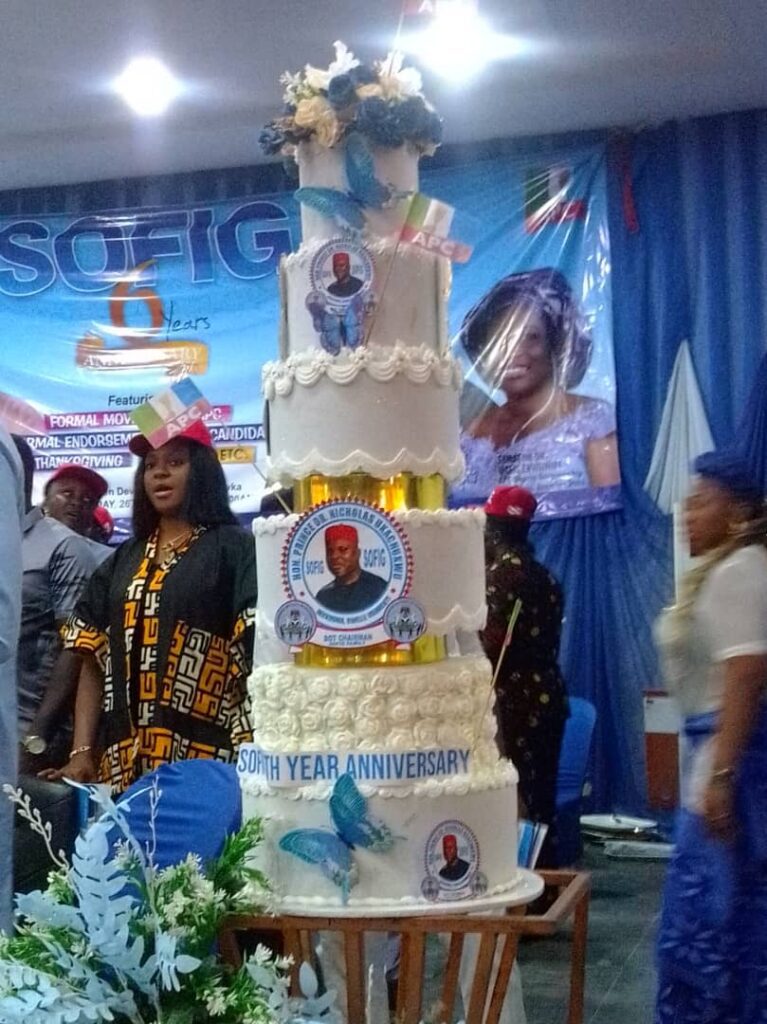 The charged atmosphere literally turned to a Naira rain as the leading support group backing Ukachukwu, in commemoration of its sixth year anniversary raised so much money from it’s crowd of committed members, well-wishers, friends and supporters. They consequently donated One hundred and fifty million Naira in support of Ukachukwu, the APC Governorship candidate’s aspiration.