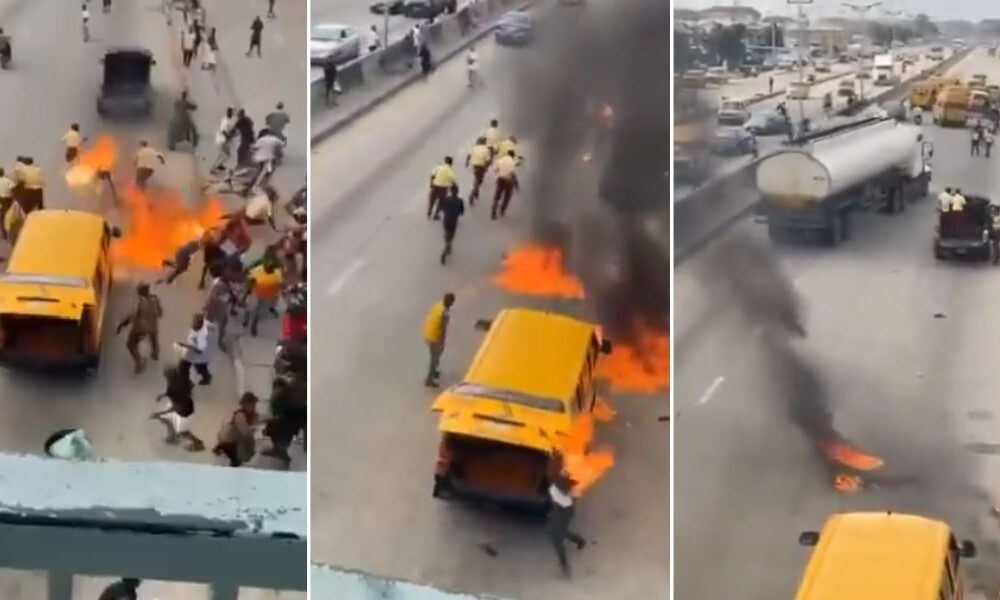 A yet-to-be identified driver of a commercial bus has reportedly set ablaze himself, his bus and a Lagos State Traffic Management Authority, LASTMA, officer. The driver...
